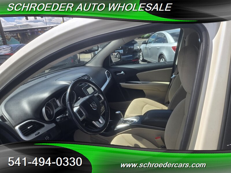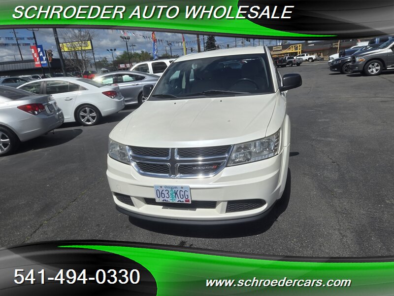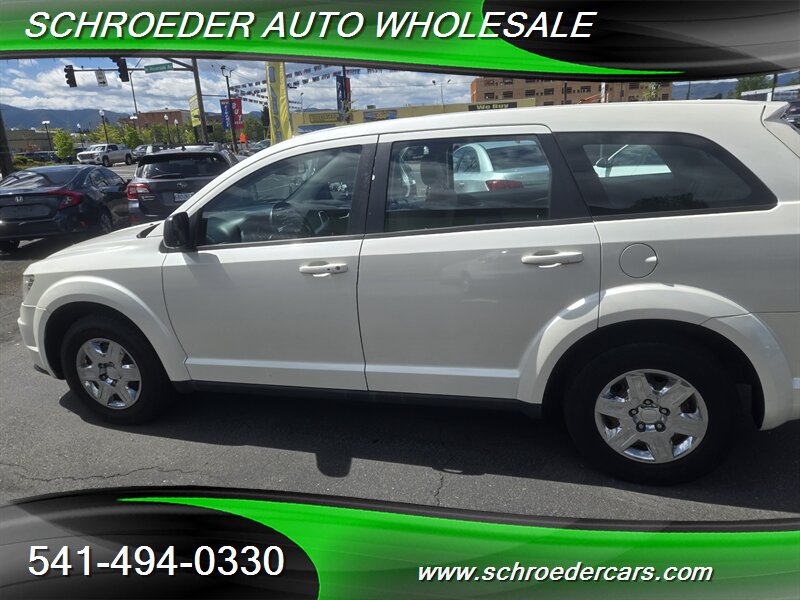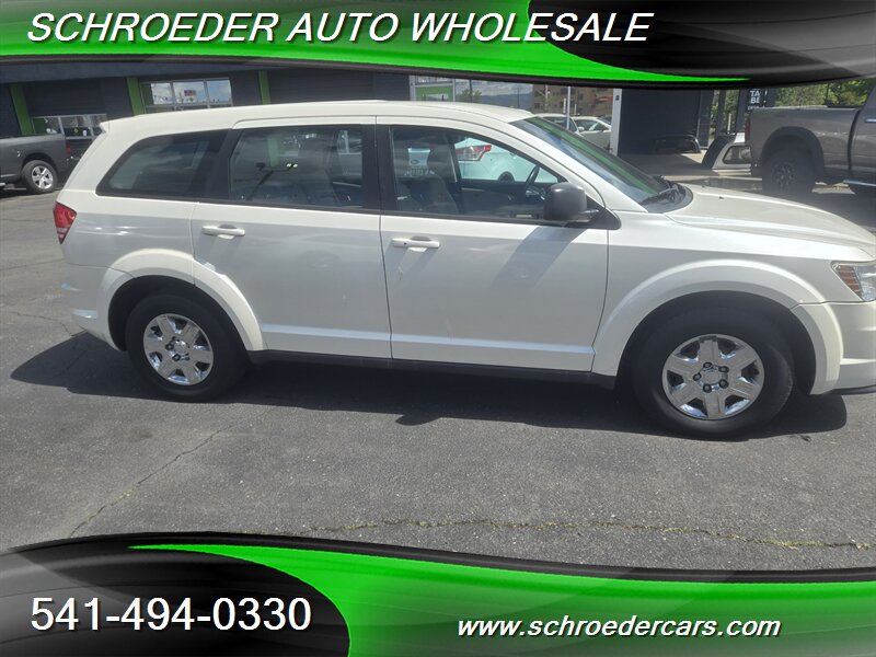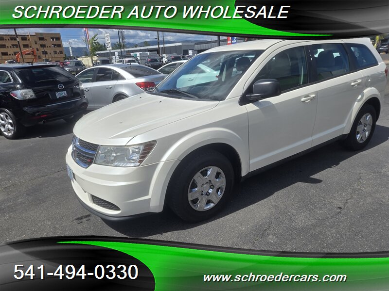 Clean white exterior and warm tan cloth interior — this 2012 Dodge Journey American Value Package is powered by the reliable 2.4L engine, averages under 10,000 miles per year with less than 148,000 miles, and returns about 19 MPG city / 26 MPG highway. Factory-standard features include power windows and door locks, remote keyless entry, air conditioning, cruise control, AM/FM/CD/MP3 stereo with auxiliary input, comfortable tan cloth seating with a 60/40 split-folding rear bench for added cargo flexibility, and a practical center console with cupholders. Safety equipment comes from the factory too: front and side airbags, side-curtain airbags, anti-lock brakes, traction control and stability control for confident driving. This Journey is in excellent overall condition and ready for many more miles.